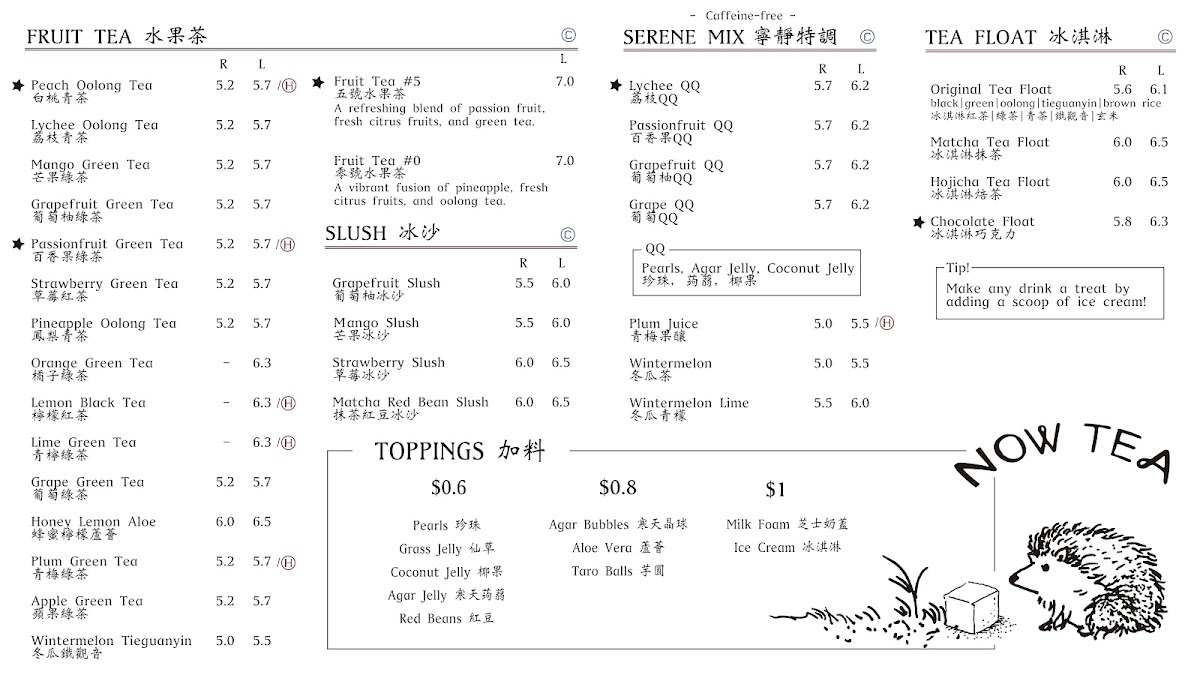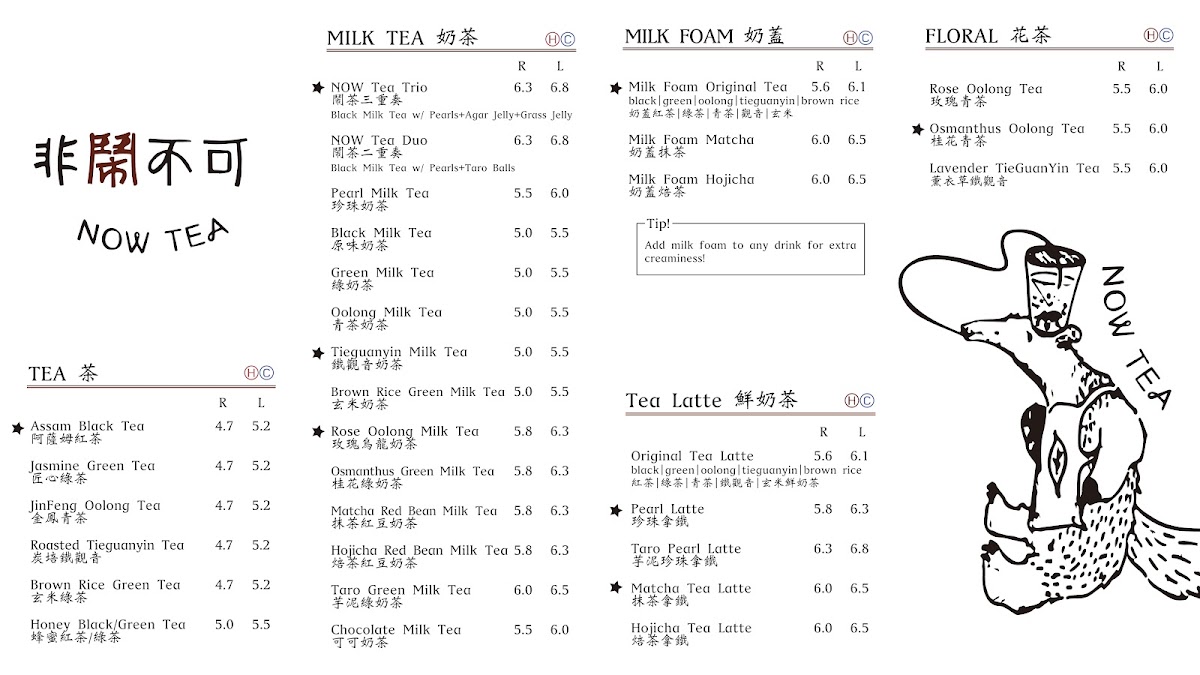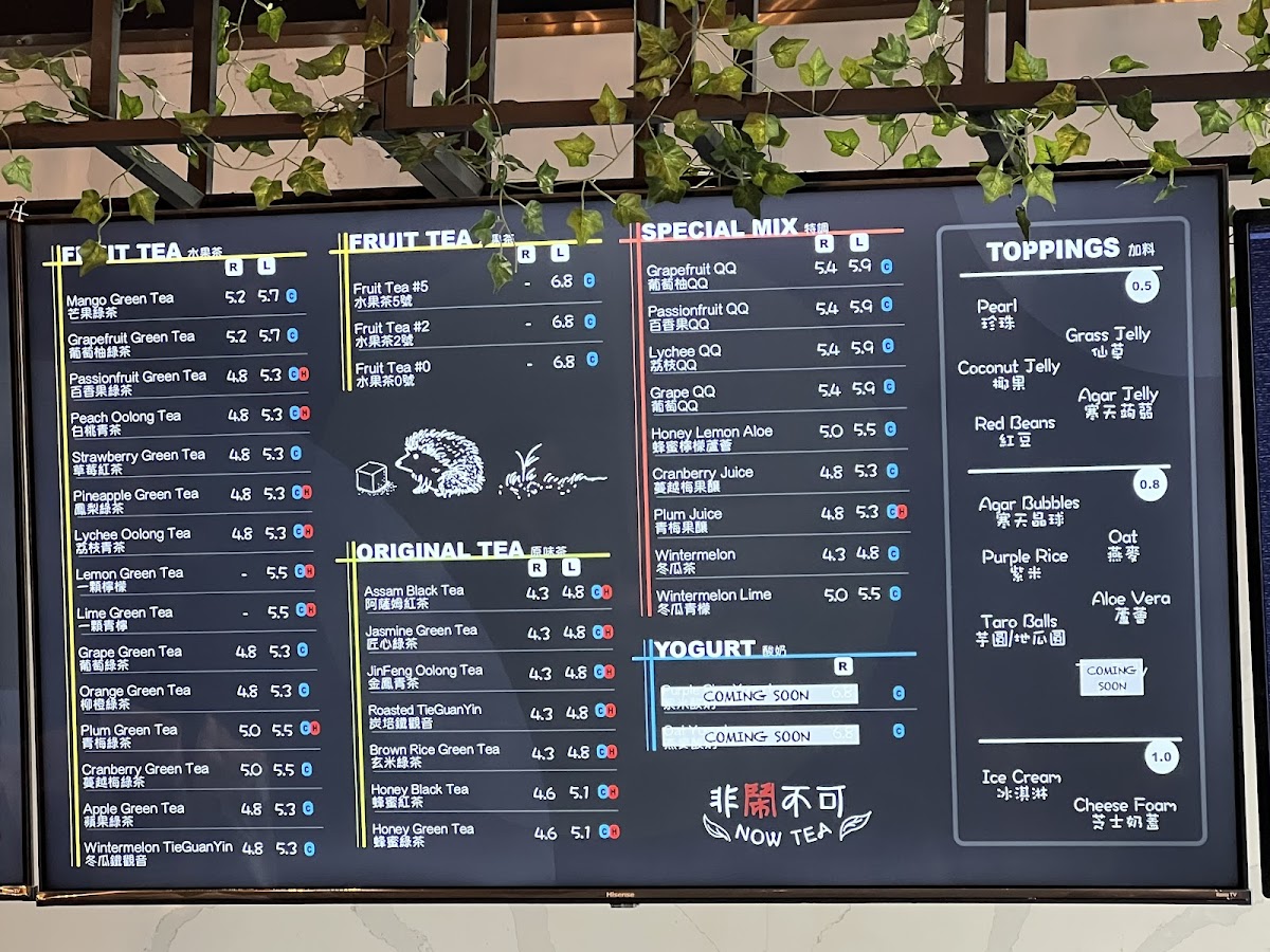 Now Tea Commerce Gate Menu